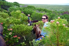 This is a relatively easy day which traverses the fynbos mountains of the area. Riding includes mountain top canters, following flower pickers tracks through valley and dale bringing us to the oasis of Bodhi khaya. Amazing floral display of the Mountain Fynbos