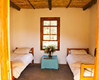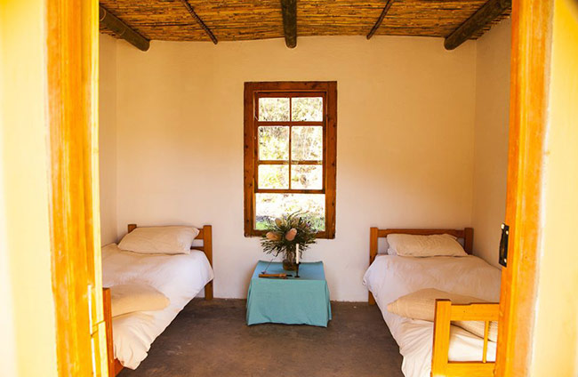 The bedrooms share showers and toilets, accessible from the stoep. The communal cottage has simple cooking facilities and a woodstove.