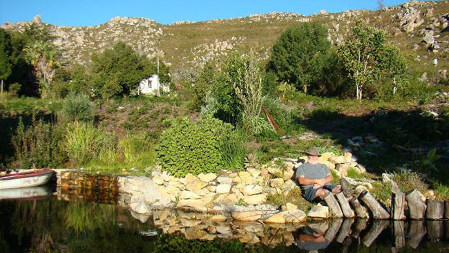 These cottages (one with four simple bedrooms and one with the kitchen and the living space) are situated in a beautiful and secluded valley in the private nature reserve of farm 215, 20 kilometres from Gansbaai and accessed from the Elim road to Cape Agulhas.This is also where the Centre for Appropriate Rural Technology (CART) is located. The CART is a test-kitchen for the re-structuring of agricultural production systems and seeks to create awareness, education and implementation of sustainable farming technologies to bring agriculture back in harmony with nature. The CART regularly organizes courses in permaculture and sustainable techniques, but the cottages are also available for accommodation during horse trails and as self-catering accommodation (though wholesome meals made from produce out of the CART gardens can be arranged for).
